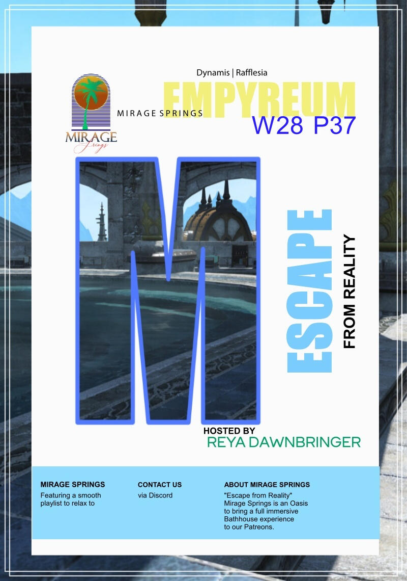 • 12/5/2025 - The Mirage Springs will feature Eorzea's smoothest DJ, TGM Sho'Nuff (Reya Dawnbringer) on Twitch
